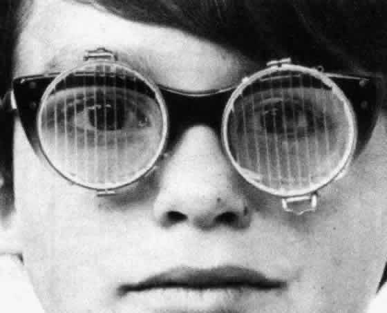 Fig 19. These glasses were prescribed for a draftsman with low vision. They consist of a +4 D Fresnel membrane add in an executive-style bifocal having a segment 30 mm high which is considerably higher than available in conventional bifocals.