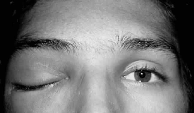 Fig. 8. Orbital cellulitis is distinguished from preseptal cellulitis by the presence of inflammatory proptosis.