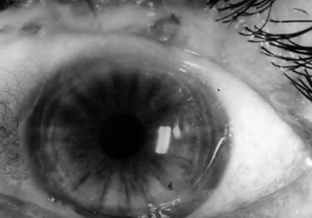 A rare, severe form of congenital autosomal recessive ichthyosis occurs in which infants are born with grotesque, deeply fissured skin and deformities of the hands and feet. This is the harlequin fetus, a condition that proves fatal, usually within 6 weeks.170 On light microscopy, ichthyosis skin lesions demonstrate thickening of the epidermis with hyperkeratosis. There is usually some degree of thickening of the granular layer, with inflammatory infiltration of the dermis. However, in ichthyosis vulgaris, the granular layer is thinned or absent and the dermis is normal. The cells of the granular layer exhibit marked vacuolation in epidermolytic hyperkeratosis. Epidemiology The incidence of ichthyosis vulgaris is approximately 1 per 300 people, and that of epidermolysis hyperkeratosis and lamellar ichthyosis is 1 per 300,000 people. The incidence of X-linked ichthyosis is 1 per 6000 males. All these varieties of ichthyosis become clinically apparent soon after birth, all are worse in winter and in dry climates, and patients have the disease for life. Pathogenesis Hyperkeratosis is the most typical histopathologic feature. The granular layer of the epidermis is absent in ichthyosis but present in X-linked and lamellar forms, and giant keratohyaline granules are present in the granular layer of the skin of patients with epidermolytic hyperkeratosis. The genetic defects at the base of the pathogenesis of the various forms of ichthyosis are undoubtedly varied, but the end result is the same, with an epidermal defect that results in increased germinative cell hyperplasia, decreased desquamation (perhaps secondary to absent detachment process), and increased keratin production. In X-linked ichthyosis, a specific enzyme deficiency (steroid sulfatase and acylsulfate C) exists, and cholesterol sulfate builds up in the epidermis. Diagnosis The diagnosis of one of the ichthyoses is based on history, clinical appearance, and the typical histopathologic features on skin biopsy. The unique histopathologic features of epidermolytic hyperkeratosis are diagnostic, and X-linked ichthyosis is diagnosed by the finding of steroid sulfatase deficiency. Ocular Manifestations Eyelid involvement in ichthyosis varies with the form of the disease. Ectropion is seen only in the lamellar pattern of ichthyosis and is the most common ocular complication in these patients, having been found in 13 of 16 patients in one series.171 This ectropion is cicatricial in nature, and it occurs predominantly in the lower eyelids, although upper eyelid involvement has been reported.172–174 Histologically, the eyelid skin exhibits typical thickening of the epidermis, with hyperkeratosis and acanthosis.175 Eyelid involvement in ichthyosis may become severe and may lead to secondary changes in the conjunctiva and cornea as a result of exposure.172 Surgery may be required for this ectropion; however, spontaneous resolution of the condition has been noted in patients with a form of congenital ichthyosis known as collodion baby. In these patients, spontaneous resolution of the ectropion may occur as the surrounding skin desquamates.174,176 There is considerable evidence to support the concept that primary corneal and conjunctival changes occur in ichthyosis. In a series of 62 patients reported by Jay and co-workers, 16 patients had characteristic corneal changes.172 Of these, 13 had sex-linked ichthyosis and 3 had ichthyosis vulgaris. None of these patients had lamellar ichthyosis, the form most frequently complicated by ectropion. Sever and his colleagues also noted corneal changes only in male patients with X-linked ichthyosis.171 These opacities were diffuse and confined to one deep layer of the cornea, either Descemet's membrane or deep stroma. The opacities were dot or filament shaped (Fig. 23). The opacities became more apparent with increasing age and were not associated with any visual loss. None of the patients with lamellar ichthyosis showed this change, but it was present in most of the female carriers of X-linked ichthyosis. Katowitz and his co-workers have reported the primary involvement of conjunctiva in ichthyosis, citing keratinization, hyperkeratosis, parakeratosis, and papilla formation as characteristic histologic features.175 Because their biopsy material was taken from the fornix region, these authors believed that the observed changes were primary in nature and not due to exposure, as others have suggested.