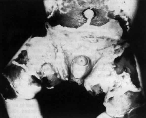 Symptoms in the hereditary form of EB tend to appear shortly after birth or in early childhood, and they reappear periodically during the patient's life. Epidermolysis bullosa simplex is the mildest form, and only 2% of these patients have any mucosal involvement. The mucosae are not involved in the hands-feet form. The recessive forms, epidermolysis bullosa letalis and dysplastic epidermolysis bullosa dystrophica, have mucosal involvement uniformly; conjunctival disease, although less common than oral disease, may be severe.105 Epidermolysis bullosa dystrophica is characterized by scarring of the skin over limbs, hands, and feet. The scars become keloidal, resulting in deformities of the limbs, hands, and feet; these are most severe in the dysplastic form (Fig. 17). The most severe involvement of mucous membranes also occurs in the dysplastic, recessive form of epidermolysis bullosa dystrophica.106