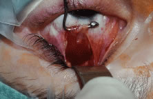 Figure 54 shows the conjunctiva being elevated by the assistant with Castroviejo forceps. The anterior extension of the muscle can be seen.