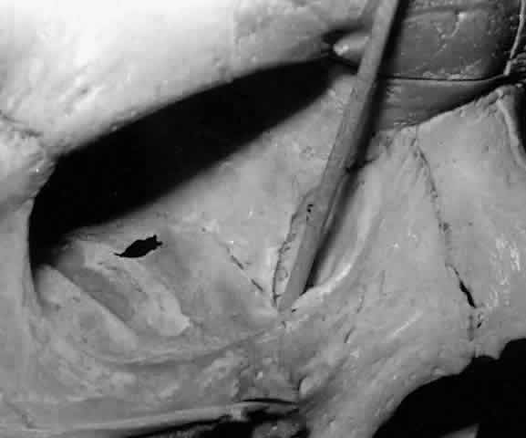 Fig. 21. The fundus of the lacrimal sac (pointer) is somewhat pointed and projects 4 mm above the entrance of the common canaliculus.