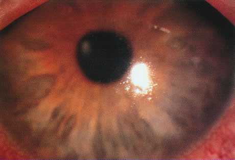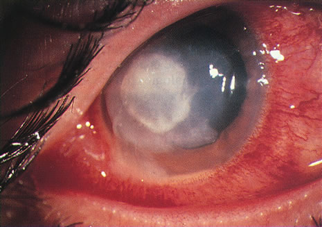 Fig. 4. Established Pseudomonas keratitis with a corneal abscess. The onset of symptoms was 3 days earlier.