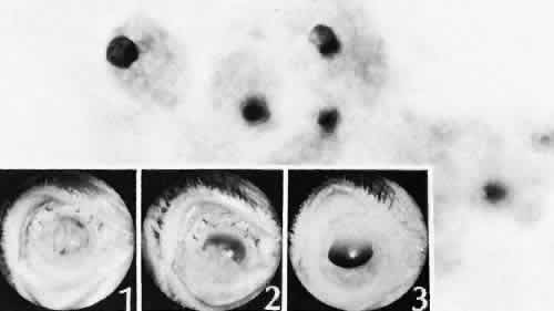 Wound healing of the posterior uveal tract follows the general principles for healing of vascularized tissue. The iris, however, heals differently. When the iris wound is perpendicular to its circumferential ridges, such as in a typical peripheral iridectomy or iridotomy, the cut edges pull apart. Granulation tissue does not form to close iridectomy incisions probably because of the inhibitory effect of the aqueous flowing through the opening of these small incisions. Iridotomies created by argon laser (Fig. 10) may be anatomically closed by apparent migration of iris pigment epithelium.36,37