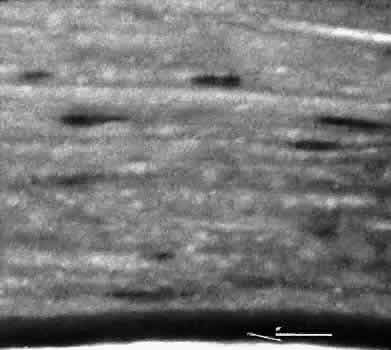 With several microkeratomes, scanning electron microscopy may show a fine undulating contour up to 0.2 mm at the border of the lamellar bed and flap. This feature is formed as chatter lines parallel to the cutting edge of the microkeratome blade (Fig. 19). The frequency of the chatter may relate to the nonlinear pass of the microkeratome. Chatter is absent in rotary keratomes and keratomes using a high oscillation frequency.66–68